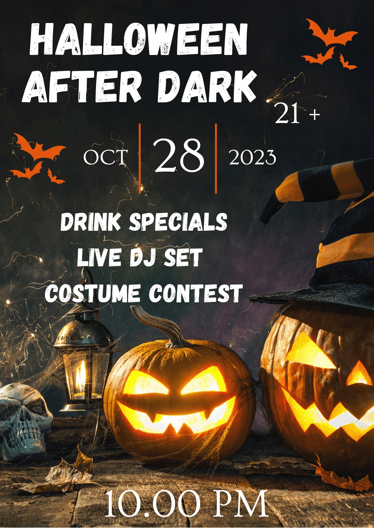 Get ready for a night of spooktacular fun at our Halloween After Dark Party! A thrilling evening filled with live DJ sets, tantalizing drink specials, and an epic costume contest.